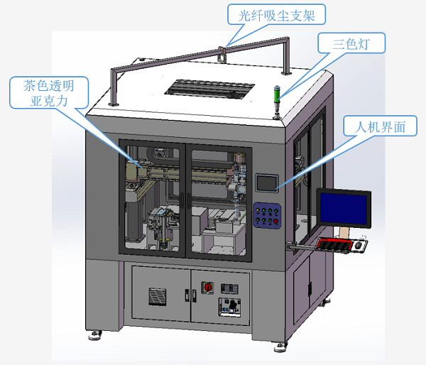 | 장비 상단 커버는 판금과 황갈색 아크릴 패널로 구성되었으며, 작업자의 안전을 위해 안전 격자가 설치되어 있습니다. 장비의 인간-기계 인터페이스는 회사의 기존 구조에 맞춰 설계되었으며, 용접 매개변수는 시각적이고 추적 가능합니다. |