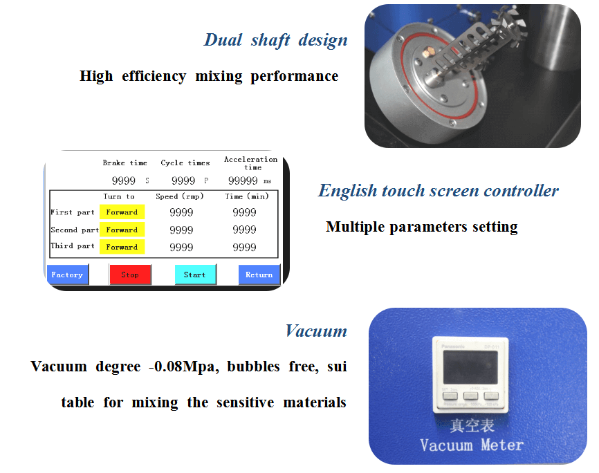 · 진공 혼합 과정 중 쉬운 조작과 안전성 보장을 위한 지지 프레임 디자인을 갖추고 있습니다 .