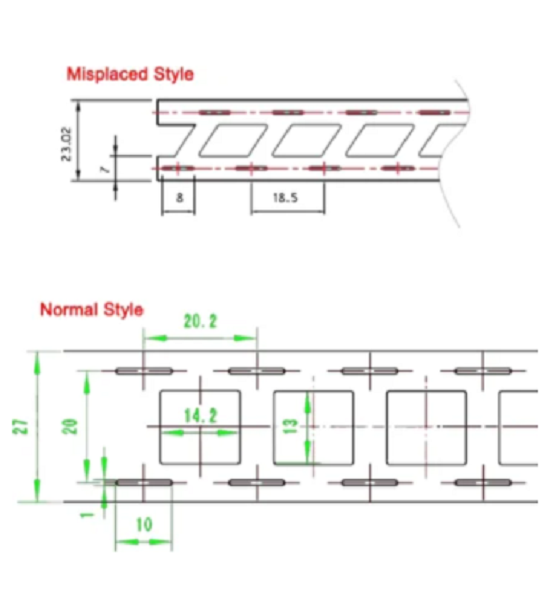 크기: 두께: 0.15mm, 너비: 18.5mm, 간격: 23mm.