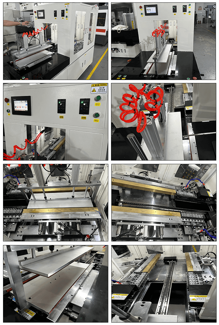 장비 작동 과정: 셀을 고정 장치에 수동으로 넣고 양손으로 작동을 시작합니다. 실린더가 자동으로 셀의 압력을 낮추고 조입니다. 고정 장치는 자동으로 엣지 실링 및 평탄화 성형 휠, 원형 롤링 커터, 1차 롤러 접힘, 2차 롤러 접힘, 3차 롤러 접힘, 가열 및 엣지 다림질 구역(자동 엣지 다림질, 시간 조절 가능)을 통과한 후 압축된 배터리 셀 실린더가 자동으로 상승합니다. 흡입 셀의 기계식 암이 고정 장치 셀 위치로 이동합니다. 흡입 셀이 상승한 후 컨베이어 벨트로 이송되어 자동으로 복귀합니다. 셀이 제거되면 고정 장치는 자동으로 원래 위치로 복귀하여 다음 작업을 다시 시작합니다.